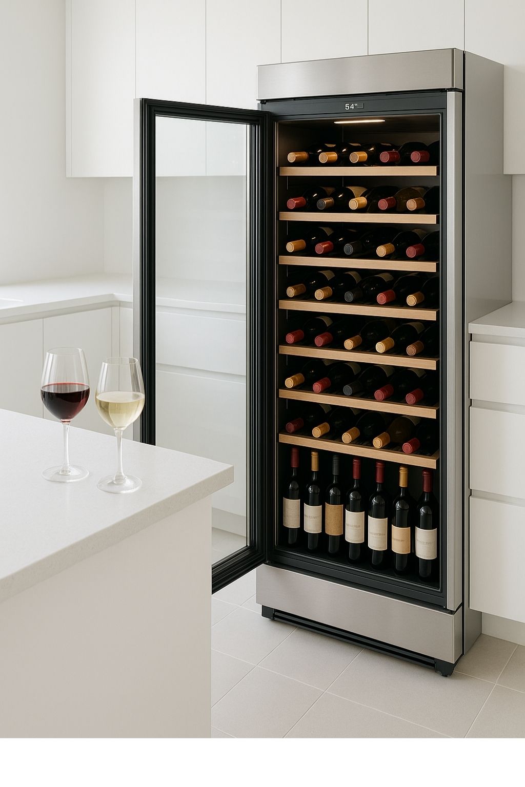 A wine fridge (or wine cooler) is designed specifically for wine storage, keeping bottles at stable temperatures with controlled humidity and minimal vibration. Standard kitchen fridges are too cold and inconsistent, which can damage wine over time.
